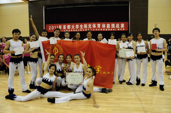 为推动体育运动在首都校园的广泛开展,进一步提高广大学生的健康水平,2011年首都大学生阳光体育体能挑战赛5月28日在北京工商大学举行。此次比赛共吸引了来自北京高校的20多支代表队,共计大学生300余人。中国石油大学共派出了17名队员(其中女生13名,男生4名)参加此次比赛。