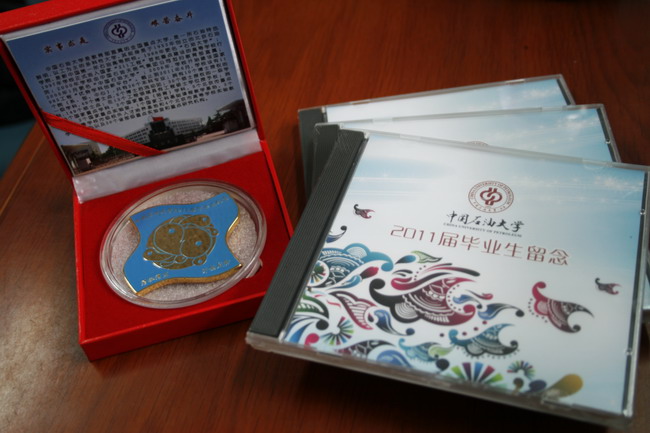 为了表达母校对应届毕业生的深深祝福,中国石油大学为即将毕业的学子们准备了精美的纪念礼品,礼品包括一枚纪念币和一张纪念光盘。