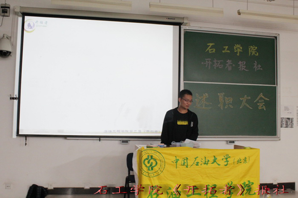 1015晚,石工学院《开拓者》报社述职大会在三教100召开。