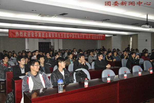 1026日,由校团委主办,校研究生会协办,宏华集团总裁张弭受邀于国际交流中心三层报告厅为石大学子带来了一场精彩的讲座。宏华集团人力资源部总监冯尚飞、人力资源部经理吴彬也一并出席。