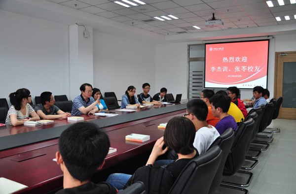 5月18日下午,中国石油大学校友、大庆油田副总设计师李杰训和北京中天油石油天然气公司总经理张苓回到母校,与学校海燕诗社及校友联谊会等社团的同学们交流座谈。