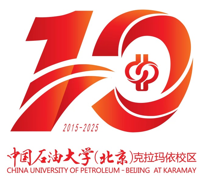 设计说明:标志主体以抽象化的数字“10”为创意基石,图形“1”形如一条昂扬向上的丝路绸带,象征着中国石油大学(北京)主动响应国家“一带一路”倡议西进办学的坚定步伐。它既是连接东西的现代丝绸之路,也是校区扎根新疆办学、服务区域发展、保障国家能源安全的发展之路、奋进之路。绸带流畅的动势,饱含对十年奋斗历程的礼赞,更指向充满希望的未来。图形“0”融入了学校校徽的视觉元素,象征着克拉玛依校区对“厚积薄发 开物成务”校训的传承与弘扬,也寓意着师生校友紧密团结、政校企援携手共进。