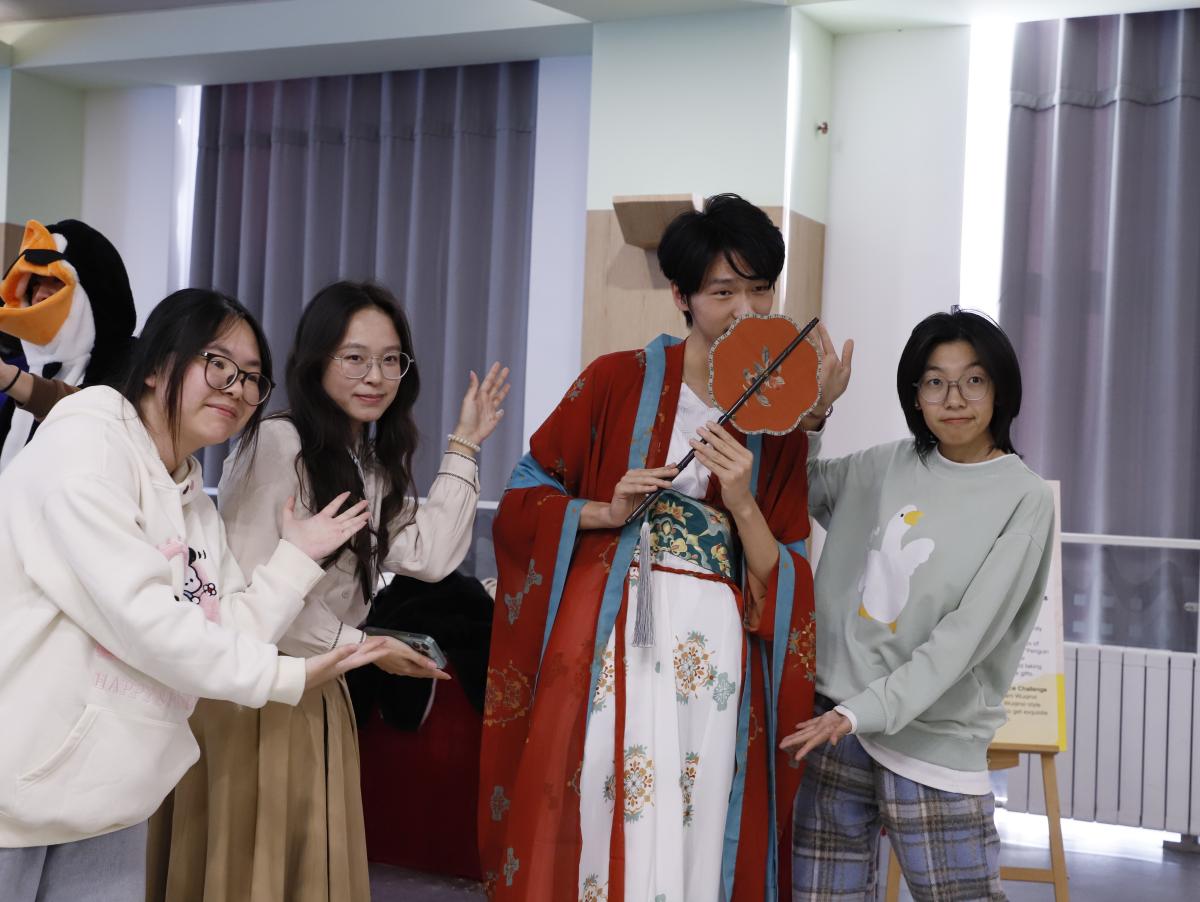 活动将传统中医文化普及、英语口语训练、“多巴胺”活力运动和趣味游园体验融为一体,设置“汉服打卡”“中药拼贴”“香囊手作”“中医义诊”以及“企鹅版”五禽戏表情包挑战五大体验区。在“汉服打卡”区,学生体验汉服穿搭,了解汉服与中医文化的关联知识。在“中药拼贴”区,学生用枸杞、桂圆、陈皮等常见药材,拼贴中国结、莲花等传统图案,在动手创作中了解药材功效。在“香囊手作”区,工作人员通过中英双语讲解薰衣草、艾叶等药材的功效,学生体验选料、配香、缝制等香囊制作全流程,定制个人专属“中国香”。在“中医义诊”区,专业中医师提供脉诊、面诊等特色诊疗,给出健康建议,并发放中英双语养生手册。活动还将虎、鹿、熊、猿、鸟等“五禽戏”核心动作与近期热门的“企鹅表情包”相结合,打造学生喜闻乐见的身体素质强化活动。