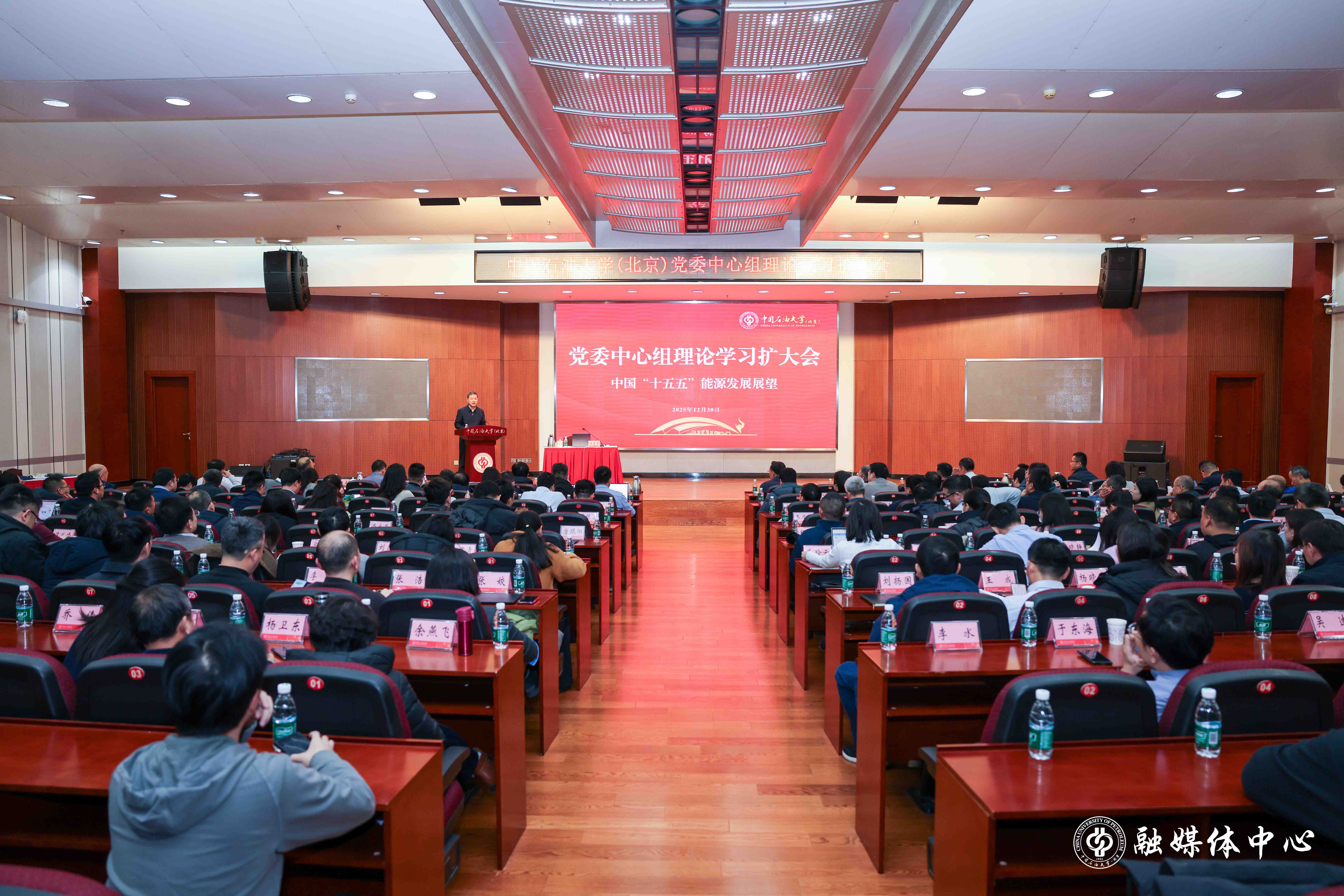 为深入学习贯彻党的二十届四中全会精神,把握能源行业发展现状与趋势,进一步明确学校在能源领域的特色定位,增强服务能源强国建设的使命感,2025年12月30日,中石大组织召开党委中心组理论学习扩大会,邀请中国海油集团原董事长、党组书记汪东进作题为“中国‘十五五’能源发展展望”的辅导报告。学校党委理论学习中心组成员、全体处级干部及学院系主任、学科负责人等教师代表参会。学校党委书记王同奇主持学习。
