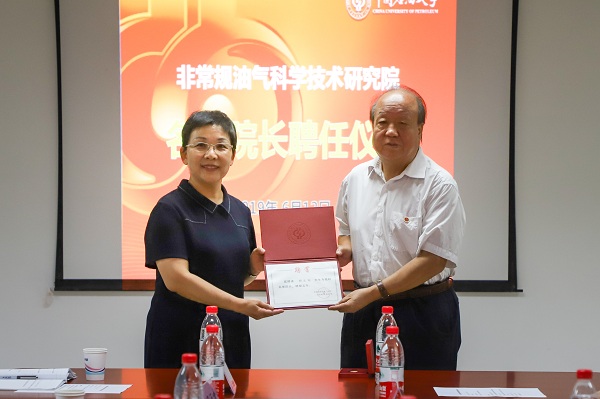 6月12日上午,中国石油大学非常规油气科学技术研究院名誉院长聘任仪式暨胡文瑞院士报告会在主楼A座327会议室举行。党委书记山红红为中国工程院院士胡文瑞颁发非常规油气科学技术研究院名誉院长聘书。校长张来斌主持聘任仪式。