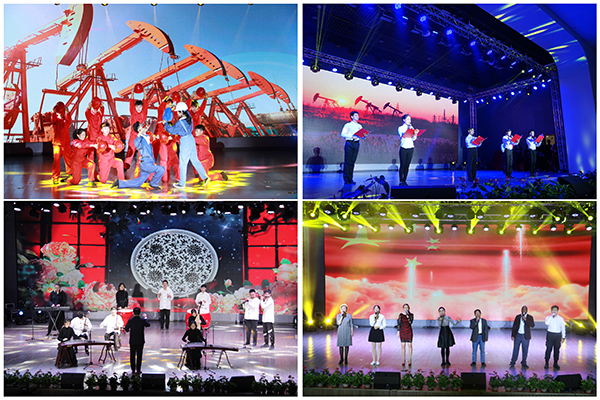 晚会分为“青春纪”“石油情”“追梦心”三个篇章。在第一篇章,啦啦操表演《舞动青春》以热情欢快的舞姿展现了石大学子的青春风采;梦之呓语动漫社的表演《Butter Fly》为观众带来了一场荧光舞的视觉盛宴。在第二篇章,大学生民乐团现场演奏了《花好月圆》《金蛇狂舞》,展现了青年学生对中华优秀传统文化的热爱;舞剧表演《实训协奏曲》、配乐诗朗诵《使命》展现了石油工人的爱岗敬业和无私奉献;校区师生代表和外教共同演唱的歌曲《我爱你中国》展现各国人民的深厚友谊。在第三篇章,大学生舞蹈团以曼妙的舞姿诉说着鸿雁不畏风雨的精神。晚会在歌曲《祖国万岁》《共青团员之歌》中圆满落幕。