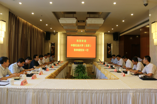 8月8日,中国石油大学校长张来斌,副校长、克拉玛依校区管委会主任兼党工委副书记张士诚,与石大党政办公室、研究生院、科学技术处、就业指导中心、石油工程学院、国际教育学院以及克拉玛依校区综合办公室等相关部门和单位负责人走访中石化西北油田公司、中石油西部钻探公司、西部管道公司、新疆销售公司,中石化西北油田公司党委书记刘宝增、总经理胡广杰,西部管道公司总经理闵希华,新疆销售公司总经理悦仲林分别会见了张来斌一行。