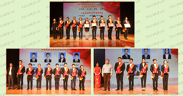 大会以“奋斗的青春最美丽”为主题,分为“奋斗的青春”“多彩的青春”“无私的青春”三个篇章,对一年来在学校共青团工作中涌现出来的各类先进集体和优秀个人进行表彰。韩尚峰为荣获“2017年全国活力团支部”称号的石油工程学院2015级卓越团支部以及荣获“2017年北京市五四红旗团支部”称号的地球科学学院资勘15-6团支部颁奖,号召全校基层团支部向两个获奖支部学习。与会各职能部门负责人分别为获评优秀团委、优秀团支部、优秀主题团日活动、最佳(十佳)社团、优秀志愿服务项目、科技创新之星、优秀学生干部、社会实践优秀指导教师等31项荣誉的获奖代表颁奖。