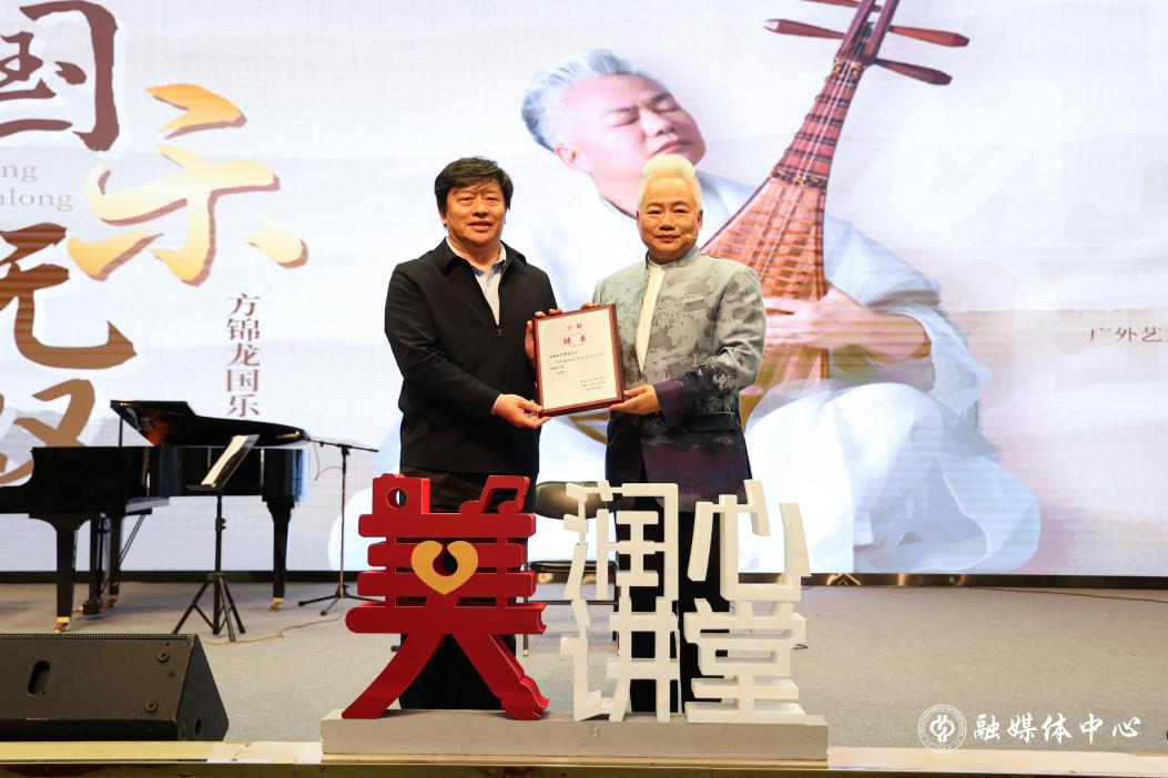 韩克飞在致辞中表示,方锦龙先生以创新方式激活传统文化潜力,与学校“以美育人”的理念高度契合,希望现场师生们能在国乐之美中感悟中华文明的深厚底蕴,在坚定文化自信中汲取奋进力量。