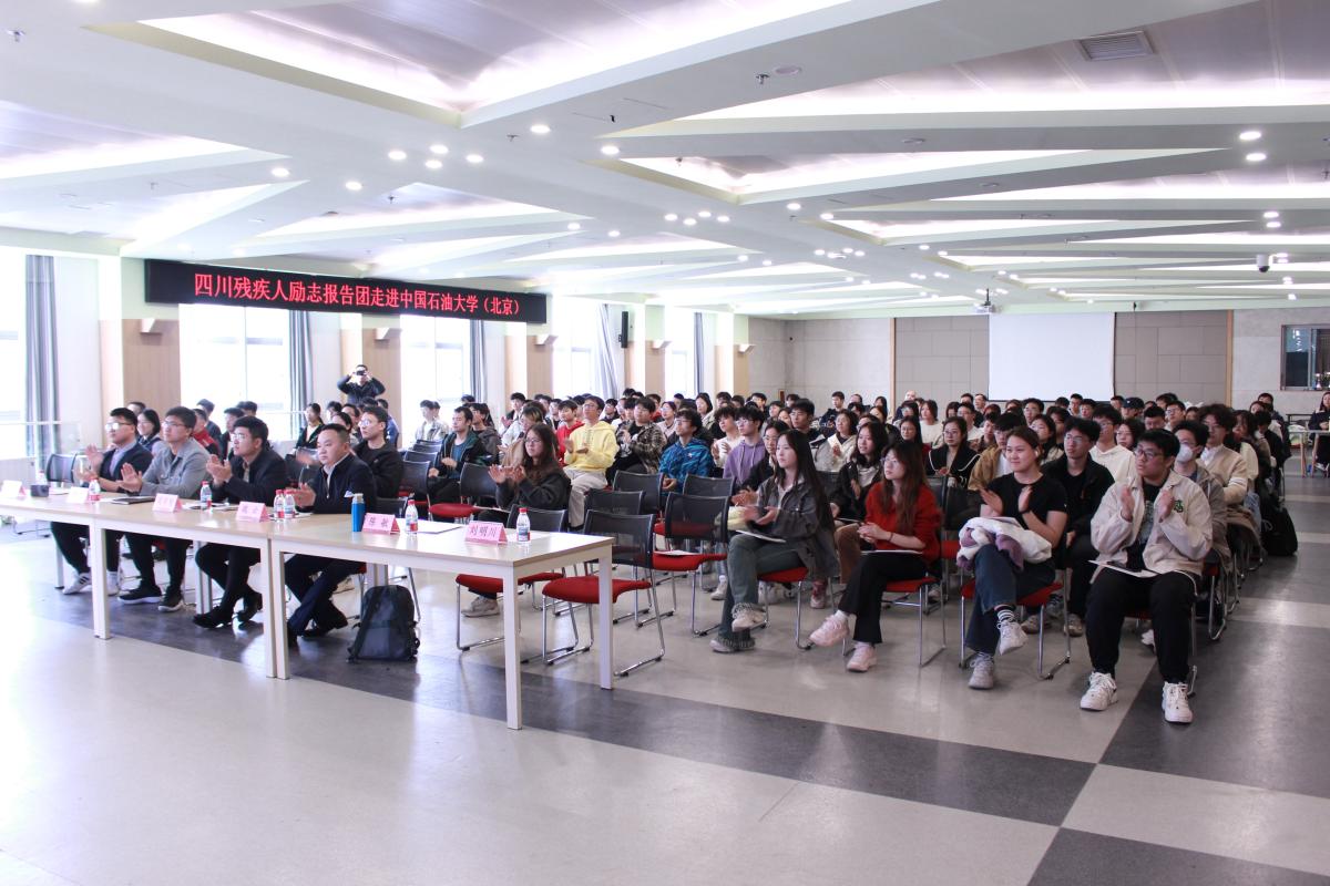 3月20日,中国石油大学(北京)联合四川省人民政府驻北京办事处、四川省残疾人联合会举办“弘扬正能量、奋进新征程”四川残疾人励志报告团中石大专场宣讲活动。来自四川残疾人励志报告团的三位宣讲嘉宾刘敏、唐建、博史尼撒为师生做专题宣讲。
