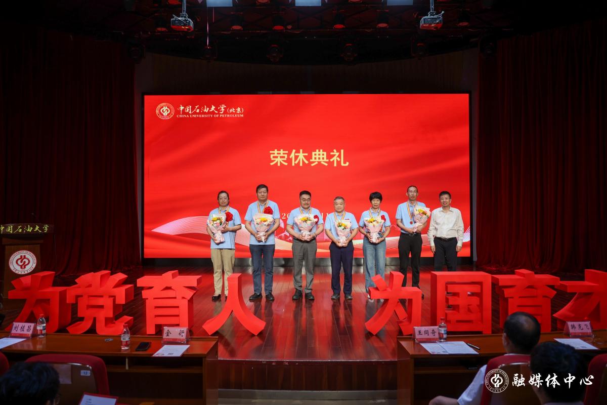 9月10日下午,中国石油大学(北京)在教工活动中心报告厅举办第三届“为党育人 为国育才”育人故事讲述活动暨2025年度教职工荣休典礼,共同庆祝第41个教师节。学校党委书记王同奇,校长金衍,党委副书记、纪委书记韩克飞,副校长刘植昌,党委副书记蒲俊霖,副校长黄磊,校本部机关及直属单位负责人、各学院党委书记、荣休教师代表、新入职教职工、青年师生代表等近300人现场参加,克拉玛依校区设立分会场,干部和师生代表同步收看。