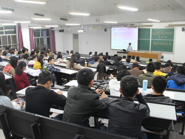 1022日晚,石大地球物理与信息工程学院2015届毕业生就业动员大会在三教105召开。信息学院辅导员以及200余名2015届毕业生参加了会议。