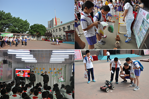 活动在庄严的升旗仪式中拉开序幕。在二十四节气主题游园环节,党支部成员被分为12个小队,担当游园活动导游,负责每个班级学生的组织与安全引导工作。游园活动包括节气拼图、吃春卷、系红绳、喝绿豆粥、折纸扇等形式,带领小学生们感受中国传统节气文化。在汇报表演环节,党支部携机械军旅协会、陶笛社、机器人协会为小学生们带来了退伍军人军礼拳表演、陶笛表演、吉他表演、机器人表演等节目,赢得了东关小学师生们的赞扬与好评。