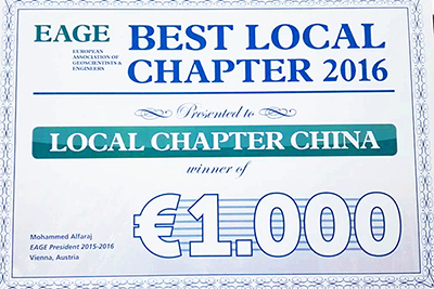 近日,欧洲地学家与工程师协会(European Association of Geoscientists &Engineers,简称EAGE)第78届年会在奥地利维也纳举行。会上,EAGE中国分会(EAGE Local Chapter China,简称中国分会)从全球21个分会中脱颖而出,获评EAGE 2016年全球最佳分会(EAGE Best Local Chapter 2016)。该奖项每年评选一次,每次评选一个最佳分会。