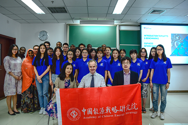 7月13日,2016年标普全球普氏实习生大赛(S&P Global Platts Internship Program)在逸夫楼509教室落幕,标普全球普氏中国区编辑总监Sebastian Lewis、高级分析师Cindy Liang以及石大中国能源战略研究院副院长张奇参加颁奖典礼。