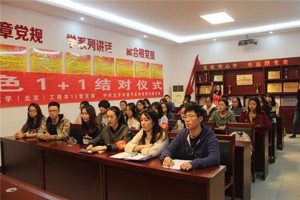 10月19日下午,中国石油大学工商管理学院本15党支部与中共百善镇钟家营村支部委员会于百善镇钟家营村党员活动室举行红色“1+1”结对仪式。