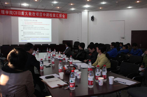 会上,理学院副院长张瑛代表学院汇报了CDIO重大教改项目进展情况,项目子课题负责人钟寿仙教授、王爱军教授、王芳副教授、刘建军副教授分别从CDIO工程教育模式下的大学物理课堂教学、大学物理实验管理评价、大学物理实践教学以及高等数学教学改革五个方面作了详细汇报。