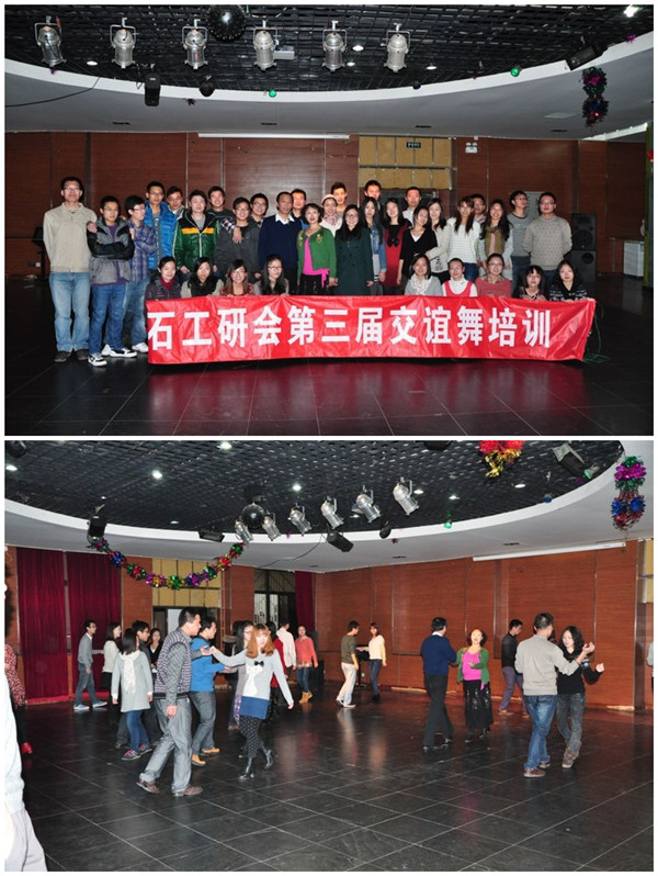 11月18日晚,石工学院研究生会在科学会堂地下活动中心组织了中国石油大学第三届交谊舞培训成果展示舞会。本届交谊舞培训历时一个月,聘请职业舞蹈教练进行了全程专业指导。培训的舞蹈主要有北京平四、慢三、华尔兹、探戈、伦巴等。全校约有100余学生报名参训。