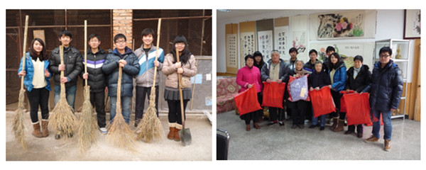 下午两点,志愿者们来到爱地敬老院,将准备好的衣服捐赠给院里家庭条件困难的老人以及来京务工人员。随后,志愿者们又为敬老院铲除了道路上的冰雪,方便老人们出行。敬老院负责人对志愿者们表达了由衷的感谢和高度的赞扬,希望能有更多的同学参与到志愿服务活动中来。