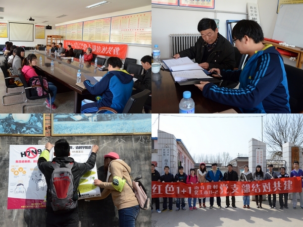 两个支部召开了共建交流会。会上,双方各自介绍了支部的情况,积极交流、增进了解,还明确了今后共同工作的目标。会后,化学工程学院本科20112班党支部的同学们在村中张贴了关于环境、卫生等方面的宣传海报,同时为村民们介绍了PM2.5H7N9新型禽流感病毒,并介绍了日常的防范措施。