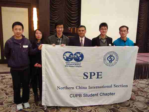 4月18日,石大SPE学生分会受邀参加在北京珀丽酒店举行的SPE北方分会月度会议。本次会议由中国区SPE北方分会主办,会议共有来自埃克森美孚、斯伦贝谢、哈里伯顿、康菲、阿纳达科等多家石油公司的工程师和技术人员,以及各院校SPE学生分会的学生代表参加。石大五名学生代表参加了此次会议。