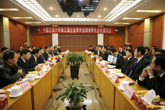 11月16日晚,我校在多功能厅隆重举行第三届企业奖学金颁奖典礼暨学生表彰大会,校党委书记蒋庆哲,校长张来斌,党委副书记吴小林、刚文哲,副校长徐春明,陪同中国石油天然气集团公司、中国石油化工集团公司、中国海洋石油总公司、大庆油田、胜利油田、新疆油田、长庆石油等31家企业代表出席颁奖典礼,并为获奖学生颁奖。