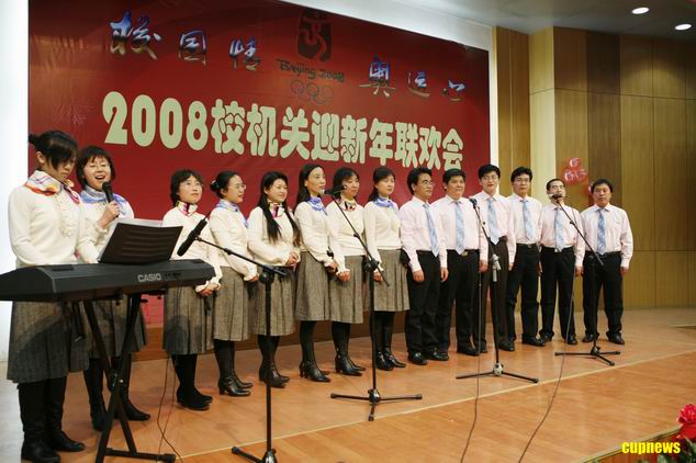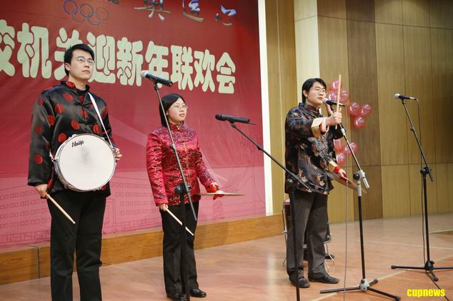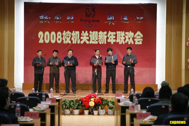 12月25日下午,校机关(教辅)在翠宫二楼报告厅举办“校园情奥运心”迎新年联欢会。校长张来斌、党委副书记刚文哲、副校长陈大恩,同机关、教辅单位的老师们一起庆迎新年。