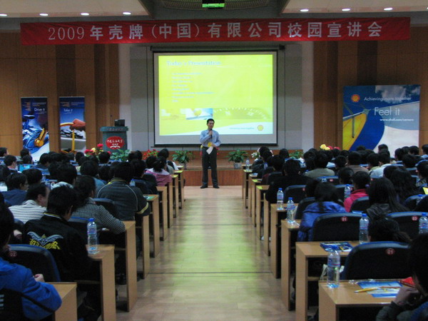 3月26日晚,壳牌(中国)有限公司校园宣讲会在翠宫报告厅举行。这是继康菲石油公司之后,今年第二家来我校招聘毕业生的世界500强企业。壳牌(中国)有限公司人力资源部和勘探与开发部六名高级主管参加了宣讲会。