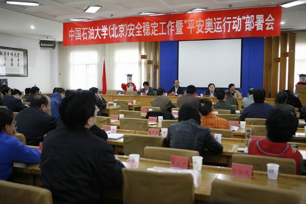 庞雄奇副校长说,今年是奥运决胜之年,举办一届“有特色、高水平”的奥运会是我们的庄严承诺,也是全国人民的共同期待。今年学校的安全稳定工作,是围绕“平安奥运”展开的,形势十分严峻、任务十分繁重。他深入分析了高校维护安全稳定工作面临的形势,并通报了北京高校以及我校去年的安全稳定情况。他指出,当前我校还存在一些安全隐患,如安全意识和法制观念比较淡薄,违章用电等现象屡禁不止等,必须引起高度警惕。