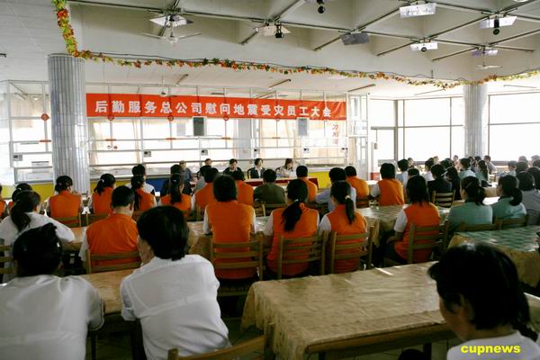 5月22日下午,后勤服务总公司召开了全体员工大会,慰问四川汶川大地震中家庭受灾的十名员工。会上副总经理谷海英同志宣读了对受灾员工的慰问信;总经理周璀亮同志代表后勤服务总公司向受灾员工发放了慰问金。员工代表及受灾员工代表在发言中,感激党中央、国务院以及学校、后勤服务总公司的关爱之情。