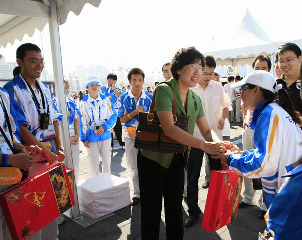9月11日上午,校党委副书记吴小林、学工处处长王英国、后勤服务总公司总经理周璀亮、保卫处副处长杨恒民一行来到奥林匹克公园,看望慰问服务在第一线的我校残奥会志愿者。中秋将至,校领导为坚守在工作岗位上的志愿者们送来了可口的月饼,并向大家提前致以节日的问候。