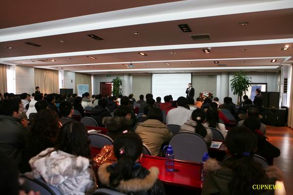 签字仪式前,Minster 先生向我校师生作了一场题为:《道达尔公司的研究与开发》的学术报告,阐述了未来能源领域的技术挑战,受到师生的好评。