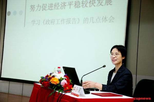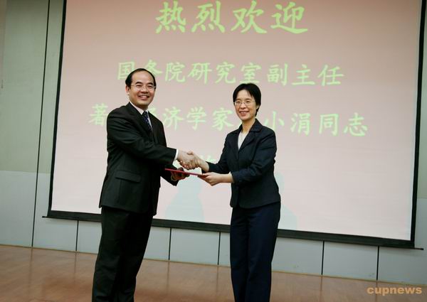 3月28日上午,国务院政策研究室党组副书记、副主任,著名经济学家江小涓女士来校做报告,并受聘我校兼职教授。江小涓结合温家宝总理《政府工作报告》,就当前我国的经济形势,做了题为“努力促进经济平稳较快发展”的专题报告。这也是我校开展深入学习实践科学发展观活动系列报告会的第二场报告。