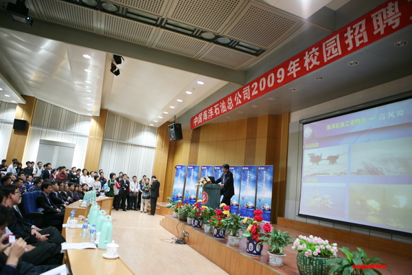 10月13日晚,中国海洋石油公司校园招聘宣讲会在我校翠宫报告厅举行。此次招聘宣讲会是中海油2010届校园招聘的首站,也是我校本学年第一个较大规模的企业宣讲招聘会。