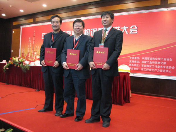 10月21日,由中国石油和化学工业协会主办的“石油和化学产业结构调整促进大会暨科学技术奖表彰大会”在北京召开。会上传来喜讯,我校共有六项成果获得科学技术奖,其中有三项一等奖,三项二等奖。我校庞雄奇、卢春喜和樊建春三位教授作为获奖代表上台领奖。