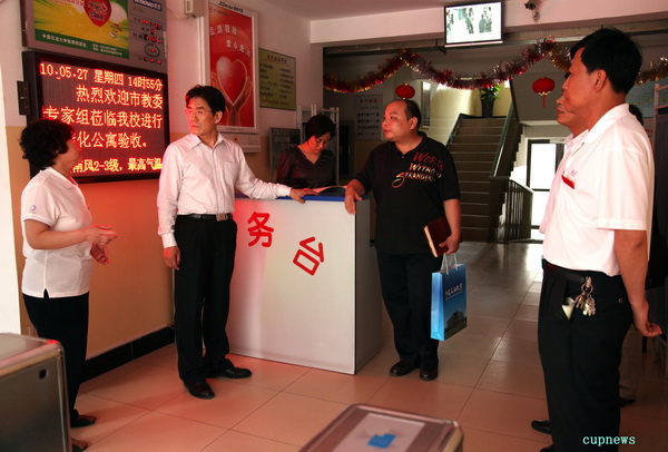 5月27日下午,北京市教委后勤处处长张龙率北京高校学生公寓管理专业委员会的有关专家,对中国石油大学阳光学生公寓进行了标准化正式验收。副校长张士诚,学工处、研工部、后勤管理处、党委宣传部、保卫处、后勤服务总公司等部门的相关负责人以及学生代表参加了验收会议。