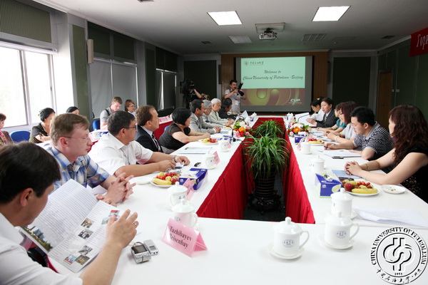 6月18日,来自哈萨克斯坦的代表团一行19人到中国石油大学进行访问,代表团成员包括哈萨克斯坦共和国国会议员Konakbayev Serik先生、PK公司副总经理Issengaliyev Bakhytzhan先生、南部哈萨州副州长Aliyev Bolatbek先生、哈油代表Tynbayev Ruslan先生等官员以及来自CTB电视台、《Otyrar》电视台、《哈萨—克孜勒奥尔达》电视台和《哈萨克斯坦商界》、《艾肯》、《哈萨克斯坦—专家》、《Ontustik》、《奥克玛斯特*奥克沙魅》、《克孜勒奥尔达新闻日报》报社的媒体记者。校长张来斌会见了来访客人,工商管理学院、国际合作与交流处、继续教育学院等部门负责人参加了会见,向客人介绍了学校的基本情况、教育科研领域的优势及哈萨克斯坦培训项目。