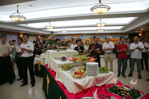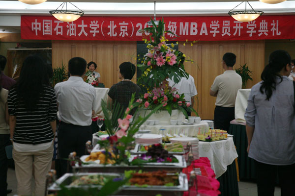随后举行了MBA学员冷餐会,为MBA学员之间、MBA学员与学校教师之间提供了一个交流认识的平台。