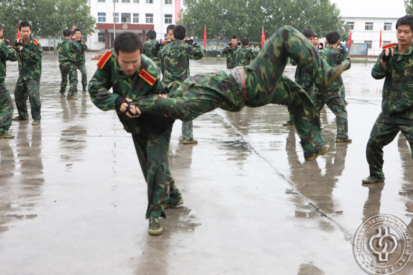 秋雨绵绵、群山环抱,1700余名学生以威武的军姿、整齐的步伐和虎虎生威的表演接受了校长张来斌的检阅,展现了16天的军训成果。典礼上,除了军体拳、格斗术的整体科目汇报外,“旗语”方队、“三声三相”方队、“匕首操”和“倒功”方队进行特色方队汇报表演,精彩的表演博得了学校领导和部队首长的一致喝彩。