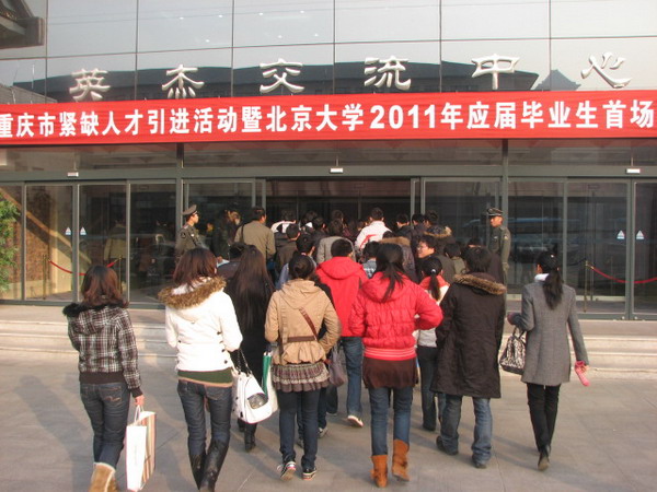 11月23日,重庆市紧缺人才引进活动暨2011届毕业生首场招聘会在北京大学英杰交流中心阳光大厅举行,中国石油大学就业指导中心专门组织、派车接送近80余名2011届未就业毕业生参加了此次招聘会。