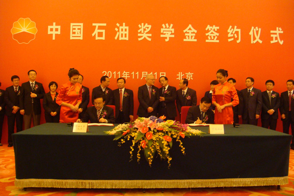11月11日,中国石油大学与中国石油天然气集团公司在中国石油大厦签署了“中国石油奖学金”协议,校长张来斌与中国石油人事部总经理单昆基代表双方在协议上签字。中国石油集团公司总经理周吉平出席签字仪式。仪式由总经理助理李万余主持。