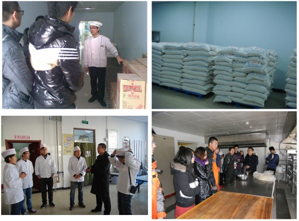 此次活动分为两个环节进行,参加活动的同学首先到位于第一食堂地下一层的食堂办伙原材料集中采购存放仓库进行参观,对食堂所使用的米、面、油、调料等原材料的品牌、价格及存储环境进行现场查看。然后同学们分成两组分别对第一食堂和第二食堂的后厨加工流程进行了了解,先后参观了食堂的生菜间、净菜间、肉菜加工间、烤烙间、蒸煮间、厨房间等,参观期间各食堂负责人还现场为大家讲述各个工作间的作用及饭菜加工的工作流程。