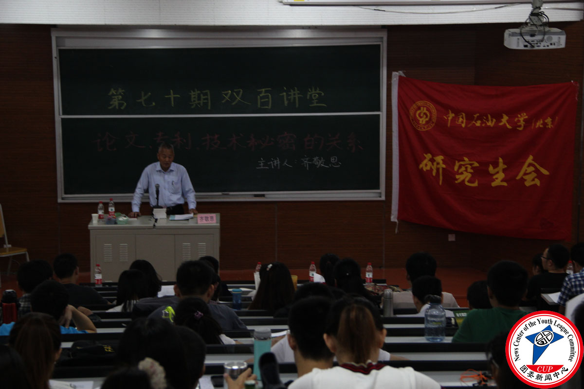 9月12日下午,石大第七十期双百讲堂在二教201举行,主讲人齐敬思为石大学子带来了以“论文、专利、技术秘密的关系”为主题的讲座。本期讲堂由中国石油大学党委主办,共青团中国石油大学(北京)委员会承办,中国石油大学研究生会协办。