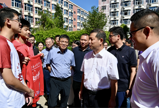 上午10点,中国石油大学(北京)党委书记王同奇,副校长黄磊,学工处处长闫亮亮,石油工程党委书记黄世军、院长宋先知等一行人,前往石工迎新处及新生宿舍指导迎新工作。王同奇对新生进行亲切关怀,强调了石油工程在国家能源战略中的重要地位,并殷切期望新同学要尽快熟悉大学节奏,投入学期初的专业学习当中。