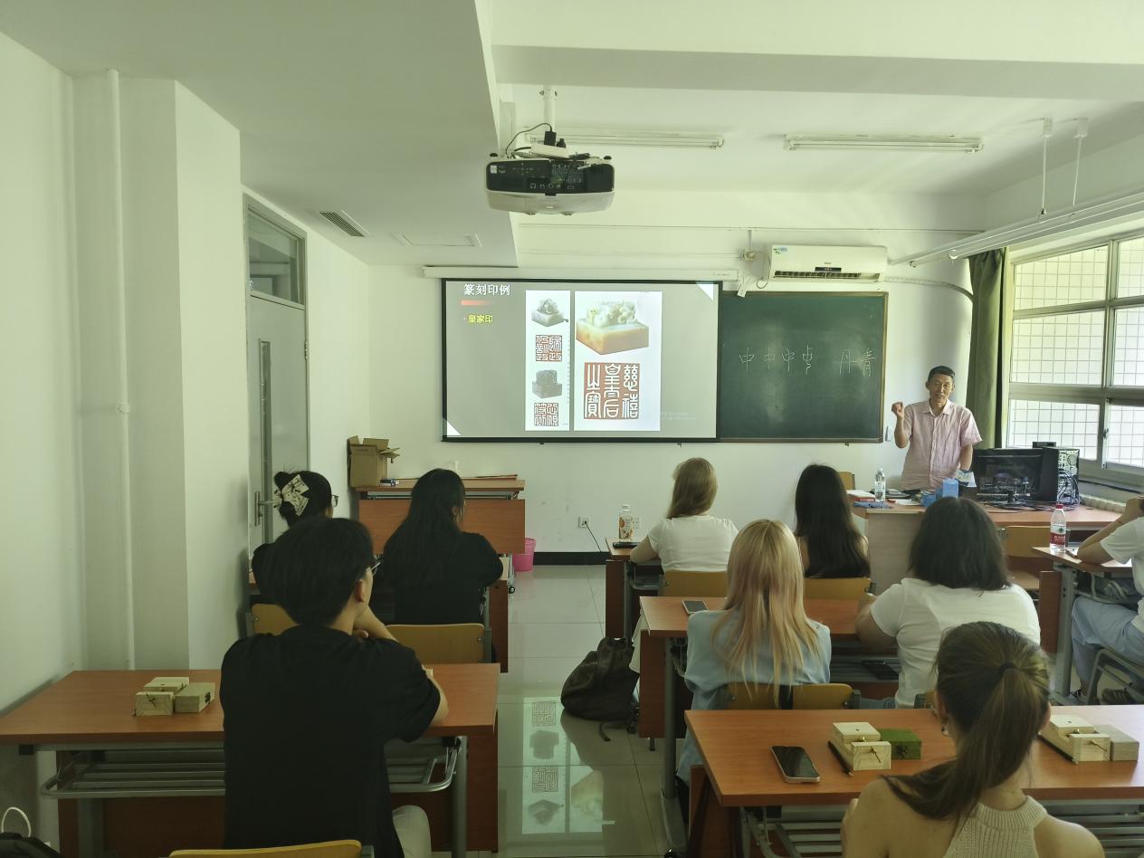 文化课程同样精彩纷呈。学员们在课堂上学习了中国历史、主要城市介绍、二十四节气及跨文化交际知识,并通过麻将学习体验了传统文化的趣味与深意。在校内文化体验活动中,他们亲手完成了剪纸、篆刻、拓印与漆扇制作,试穿了中国传统服饰,直观感受中华文化的独特魅力。