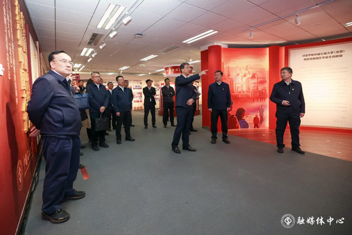 在中国石油大学(北京),怀进鹏深入油气资源与工程全国重点实验室,听取了实验室推进科技创新、开展科研攻关情况汇报,参观了油气勘探开发上游系列大型实验装置和设备,详细了解了沉积水槽实验平台、石油工程岩石力学实验平台、井孔地球物理测井平台、大型气浮三维地震物理模型实验系统等取得的科研成果和成果转化应用情况。怀进鹏听取了学校实施开放融合战略,落实国家教育对外开放重大部署、服务我国石油工业“走出去”情况以及中巴教育国际交流合作情况汇报,参观了学校“勇担时代使命 矢志能源报国”学习贯彻习近平总书记重要回信精神主题展厅。