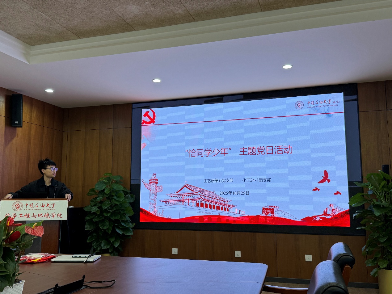 为深入学习贯彻习近平新时代中国特色社会主义思想,持续创新党支部活动形式、丰富活动内涵,2025年10月25日,工艺研第五党支部与化工24-1团支部联合开展 “恰同学少年” 主题党日活动。活动特别邀请中央党校(国家行政学院)中共党史专业的王俊驰同学作专题分享,通过党团互动、理论学习、心得交流等环节,推动青年党员与团员互学互鉴,为基层组织建设注入青春动能。