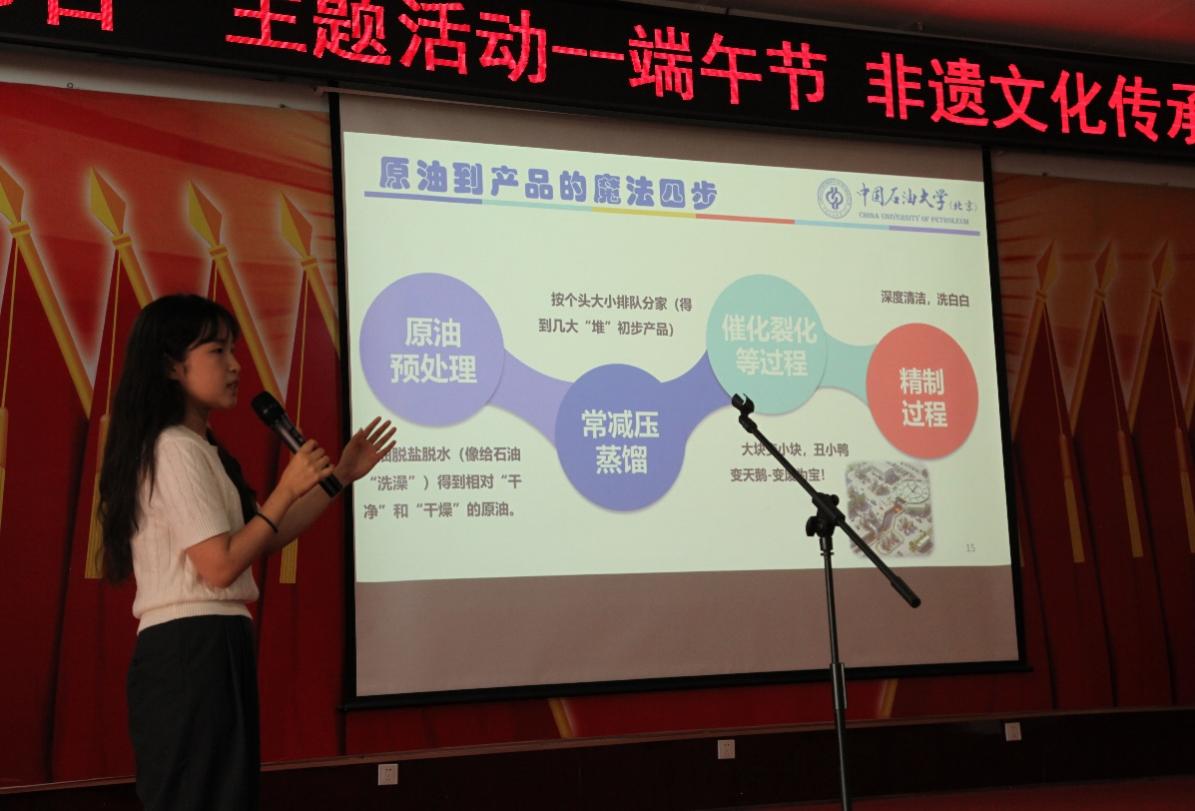学生党支部书记景雨濛为大家讲解石油加工知识