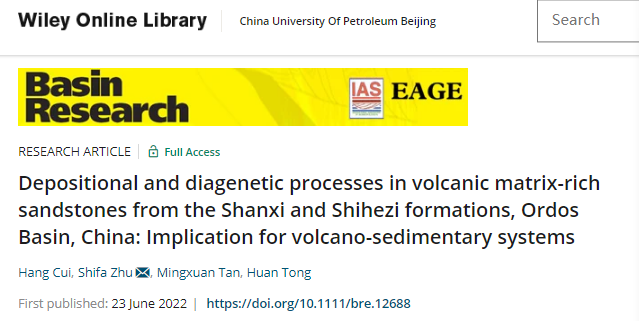 该研究成果《Depositional and diagenetic processes in volcanic matrix-rich sandstones from the Shanxi and Shihezi formations, Ordos Basin, China: Implication for volcano-sedimentary systems》发表在地学著名期刊《Basin Research》上。论文通讯作者为朱世发教授,第一作者为我院2021级博士研究生崔航,中国石油大学(北京)油气资源与探测国家重点实验室和地球科学学院为第一完成单位。