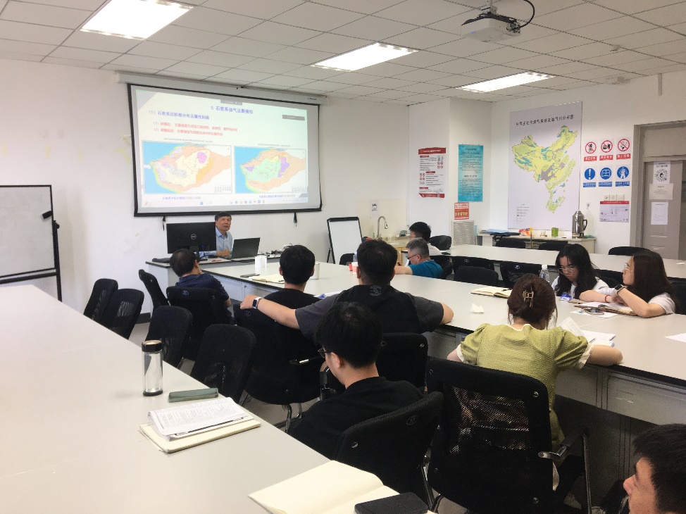 报告于上午10点准时开始,郭秋麟教授首先为大家介绍油气运聚模拟技术现状,通过对国内外现有软件理论和技术进行系统的介绍,让大家对油气运聚模拟技术的发展历程和研究方向有了深刻的了解。之后以中石油勘探开发研究院的BASIMS软件为例,分别从二维输导体系和三维输导体系混合网格建模技术等方面进行讲解,通过国内外技术对比着重分析了三维输导体系混合网格建模技术的优势。此外,郭教授分别以塔里木盆地、河套盆地和渤海湾盆地为例介绍了该技术的应用效果。最后在刘成林教授的主持下,郭秋麟教授与现场各位老师和同学们进行了友好的互动讨论,现场师生积极提问,郭教授耐心解答。报告交流内容十分精彩,也让大家深入了解油气运聚模拟与动态展示技术的研究现状,受益匪浅。